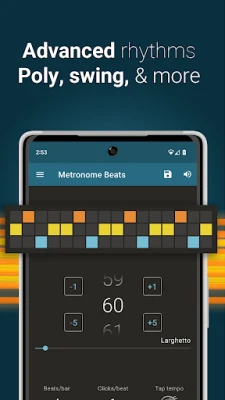Designed with ease of use in mind, Metronome Beats has controls for easily increasing and decreasing the tempo in small increments by one touch of the screen. The visual beat indicators help you to keep track of where you are in the bar and enable you to mute the metronome whilst still monitoring the tempo visually. You can also create your own custom sound settings or simply change the pitch to make Metronome Beats easier to hear over your instrument.