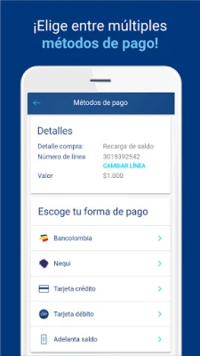 • Descargar y pagar tu factura Tigo en línea, asociar métodos de pago con tarjeta débito, tarjeta de crédito, Nequi o directamente Bancolombia.