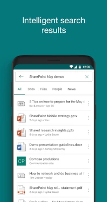 SharePoint infuses AI into the mobile app experience to keep you focused and productive while on the go. AI builds an understanding of what you work on, how you work, and how your colleagues' work relates to you. When you need expertise, content, or resources when you're on the go, SharePoint is a great place to start looking.