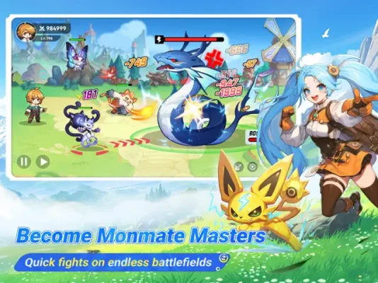 Each monmate has two shapes: the Pet shape and the Furry shape. Try you best to know more about these fantasy species and befriend with them. You are the TOP1 Monmate master, right? Train, level up your Monmates and create powerful squads. Look what will happen when you create your battle teams with various Monmates of different elements.