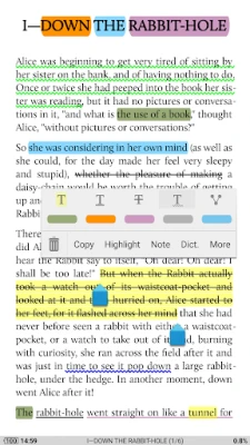 • Highlight, Annotation, Dictionary (Offline or Online, support ColorDict, GoldenDict, ABBYY Lingvo, etc.), Translation, Share functions all in moon+ ebook reader.