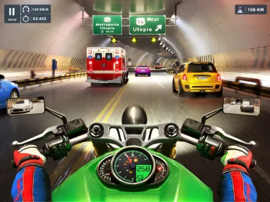 Get ready for an awesome experience where you can pick routes between your favorite cities in any country—be it the USA, UK, India, or elsewhere. Just choose a route, rev up your bike, and go on an epic ride with ‘Moto World Tour’!"