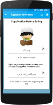 Dua (Supplications and Remembrances) guide for Kids with audio recitation and cute illustrations.