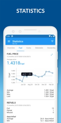 • Compare fuel prices and efficiency across stations you visit