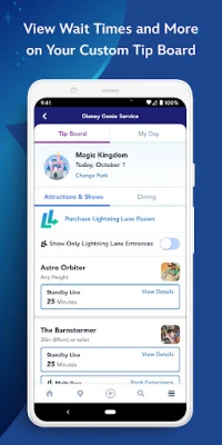 -Quickly access real-time wait times, park hours, Character Greetings, showtimes & more.