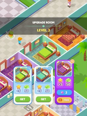 * Maximize Profits: Enhance your hotels by adding premium amenities like pools, spas, restaurants, and vending machines. Boost guest satisfaction and earn more money to reinvest into your growing empire. But be careful—each upgrade requires staffing, so hire wisely!