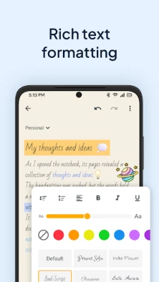 Enhance your notebook with rich text formatting options, including bold, italic, underline, and bullet points.
