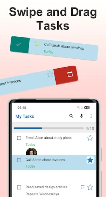 • Swipe a task to the right to quickly mark complete