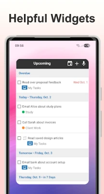 • Upcoming screen lets you see what tasks are due soon