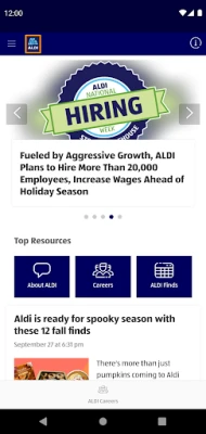 • News - stay up to date with the latest news. Push notifications allow you to see immediately what exciting news from the world of Aldi US is available. • Latest information about career opportunities • Events Calendar - use the platform for interactive way to see view upcoming events