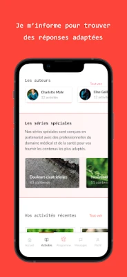 “L’exercice du Lieu Refuge, pratiqué en ateliers de sophrologie et disponible dans la bibliothèque d’activités enregistrées, permet de se sentir beaucoup mieux et plus détendu en salle d’attente ou même pendant la chimiothérapie.” Christian - Patient de l’Institut Curie