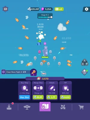 • Tap upgrade buttons to strengthen your fleet of powerful ships and deploy aircrafts.