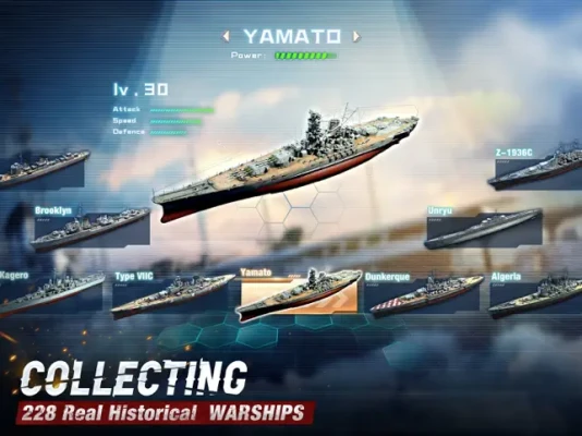This game is a strategy game with naval battles as its theme. Players need to arrange fleet composition, upgrades, tactics, and strategies according to the needs of missions and battles. By earning experience points, rewards, and leveling up, players can improve their own strength.