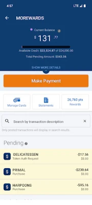 • View credit card reward points and redeem cash rewards.