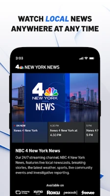The NBC 4 New York news and weather app connects you with local news, local weather and a free, 24/7 streaming news channel. Free to download and to use, the app delivers NYC breaking news alerts and weather alerts for your location that can be customized and easily managed in the app settings.