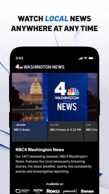 The NBC4 Washington news and weather app connects you with the best local stories, accurate weather forecasts and breaking news in Northern Virginia, Maryland and Washington, D.C. The app also gives you access to the NBC4 Washington News, a 24/7 streaming channel you can watch anytime. We’re always Working 4 You.