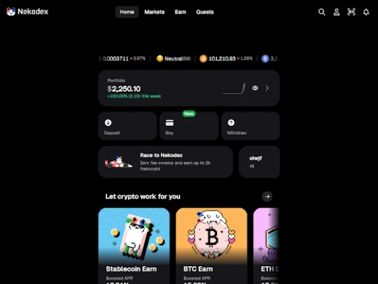 Nekodex is the ultimate mobile app for trading crypto across multiple EVM chains with absolute ease. Designed for both newcomers and experienced traders—offering a hassle-free, non-custodial experience with zero setup, no seed phrase, and secure passkey authentication.