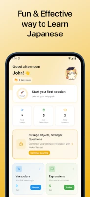 Whether you’re a beginner learning hiragana and katakana or aiming to practice conversational Japanese, this app guides you step by step with an adaptive AI tutor.