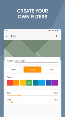 πΎ Saving and editing filters - You can also make a dark filter on your own, using our customizable options for dark mode. This night shift app allows you to create unlimited blue light filters.