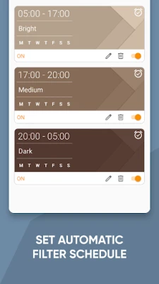 β° Automatic filter schedule - Adjust when you want your night mode to be turned on. Night shift will automatically start and end according to your program with this night filter application.