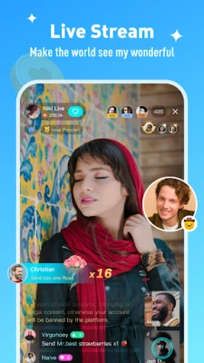 Global live streaming, endless fun. The hottest hosts from around the world are waiting for you on Niki Live! Singing, chatting, online parties, voice chat rooms, connecting,PK battles—all here waiting for you! Come join the fun~^ω^