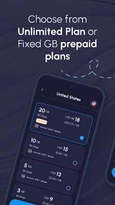 • Wide range of eSIM Data Plans: From 1 GB to Unlimited Plans.