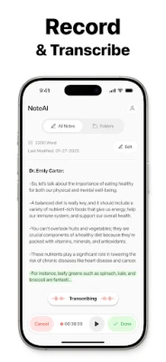 Note AI's cutting-edge technology lets you easily transcribe audio to text. No more missing important details. Record lectures, meetings, and voice memos. Record and transcribe with a single tap. Perfect for students, professionals, and anyone who needs to capture important details without the hassle of typing.