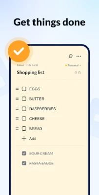 Check off, archive, edit, delete, share notes easily with this good notes app.