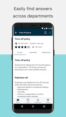 Now Mobile allows pre-hires, new hires, and employees to find answers and get stuff done across IT, HR, Facilities, Finance, Legal and other departments, all from a modern mobile app powered by the Now Platform®.
