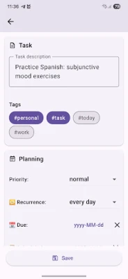 ✍️ Quick Capture – Add new tasks anytime; they’re saved directly to your vault.