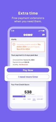 Say goodbye to big down payments and car insurance cancellations! We help finance your auto insurance at no extra cost, so you deal with us—not the insurance company. Enjoy lower or no down payments, flexible split payments, and choose your payment dates. Plus, we offer extra time to pay when needed, so you can stay insured. Break the cycle and pay with OCHO today! We make insurance shopping stress-free.