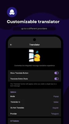 OctoGram is a third-party advanced Telegram-based client designed to offer a complete, secure, and highly customizable experience. Combine privacy, artificial intelligence, and total control in one powerful app.