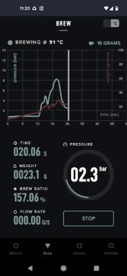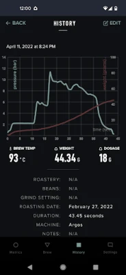 - Plot brews tracking weight, pressure, brew ratio, and flow rate. - Save brews to review with tasting notes. Use old brews as an overlay to brew the same cup of espresso