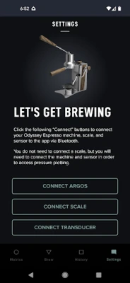 - Shows metrics about the Odyssey Espresso Argos like brew set temperature, boiler temperature, group-head temperature, fluid level.