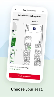 • Secure your favourite seat on the Railjet: use the graphic seat reservation