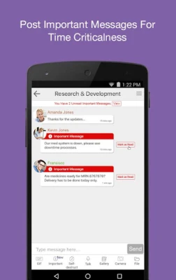 - Rich text messaging features that allow you share pictures, files, video, and audio attachments