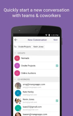 As Office Chat works for private one-to-one conversations or group chats between large or small teams, so you can talk with just one colleague or a group of ten about work related ideas, projects, and more. Beyond chatting, with Office Chat you can also securely share text messages, files, pictures, audio, and videos with your coworkers instantly -- without worrying about exchanging phone numbers or information leaking. Office Chat is the perfect tool for anyone seeking to improve their company's ability to collaborate, network, and share information. It is a cross-platform IM service that you can enjoy on iPhone, iPad, Android, Mac, & Windows Desktop. Start-ups, non-profit organizations, and businesses big and small use Office Chat to streamline information sharing and collaboration within their company. You can use it to improve your business's ability to communicate too! Download the app for free now!