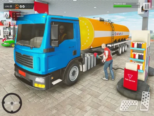 ► TANKER: Start your journey by selecting your cargo - whether it's transporting milk, gasoline, or oil in a tanker truck. Don't forget to stop at the petrol station for a crucial fuel refill along the way!