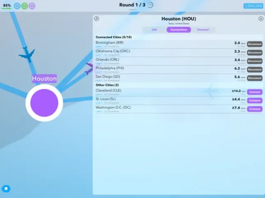 Step into the world of airline route planning, where your goal is to create a flight network to guide passengers to their destinations in a limited amount of time. You get to call the shots on which routes to draw and which cities to designate as hubs that best serve each scenario. The flight maps you design will also need to be efficient and flexible to accommodate for events that may occur, like airport rushes and closures, as its effects ripple throughout your network. With over 350 geographically and historically themed levels to play, each map you make will be put to the test.