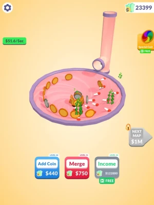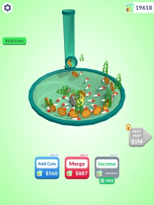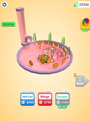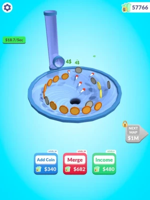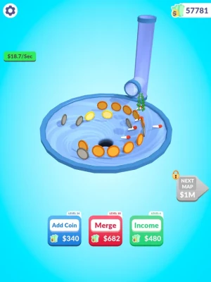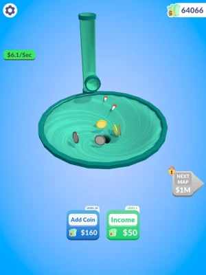 Raise your income for more coins! Watch the coins roll and go into the hole!