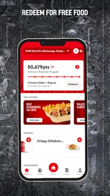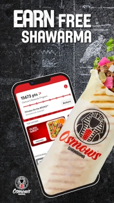 Start earning FREE shawarmas today! Download the official Osmow’s app today and order your favourite Mediterranean dishes from your nearest Osmow's. Customize your order for in-store, delivery or pick-up and start earning points toward FREE rewards. Tap. Order. Earn. Repeat.
