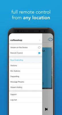 Stream the latest music into your business with Pandora CloudCover. Play and control clean, PRO licensed music in your retail store, restaurant, office or anyplace there is a public audience. With Pandora CloudCover, you are legally covered! This app gives full remote control for music and messages from anywhere. Easily change stations, stream, pause and remove songs that you don't like. Create your custom mix stations and automate day and time transitions from your online account.