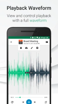 Enjoy advanced playback features such as bass boost, volume enhancement, and preset reverb effects. Easily navigate through recordings with a waveform display. Share your recordings instantly with colleagues, friends, or family using your favorite apps.