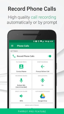 • Phone Calls: Parrot Pro mode allows users to record phone calls.