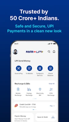 ● Paytm UPI - Send and receive money using just a mobile number. Scan any QR code, pay at shops, and more.