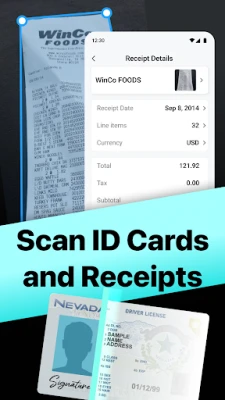 - Scan ID cards, passports, books, receipts, contracts, and more with automatic background cleanup and perspective correction