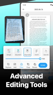- Crop, rotate, and apply filters to enhance scan quality