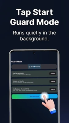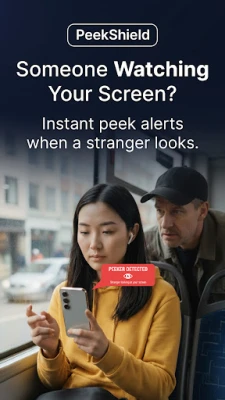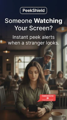 The app uses the device camera to detect nearby motion and provides on-screen notifications when movement is detected near the screen. This can be useful in public or shared environments where users want to be more mindful of on-screen visibility.