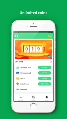 -Unlimitedly earn free coins to make international calls,local country's calls. No contract, no hidden fees. 0 fees. Free all the time.
