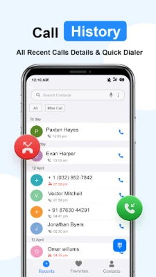 • Call Log Management: Easily navigate through your call history and manage recent, missed, and favorite calls.